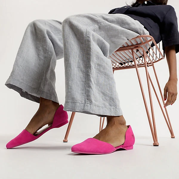 Die stylischen Ballerinas von Apple of Eden unterstreichen Ihren Look. Das Fußbett besteht aus natürlich atmungsaktivem Echtleder, das ein komfortables Trageerlebnis unterstützt. Das Obermaterial überzeugt durch das echte Wildleder. Es handelt sich um ein Schuhpaar zum schnellen Hineinschlüpfen.