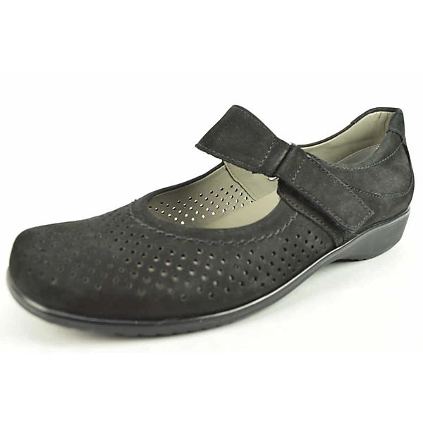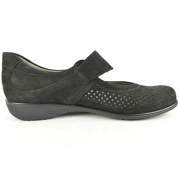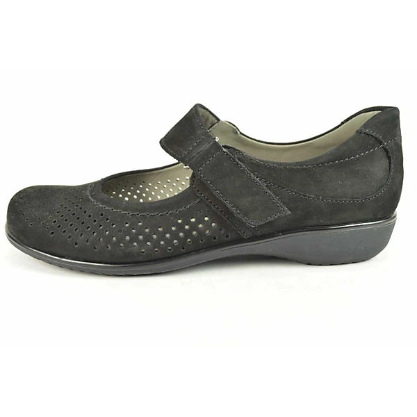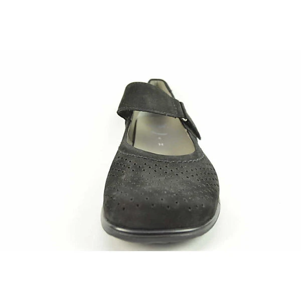 Schöne Ballerinas von Ara aus einem feinen hochwertigem Nubukleder. Innen ist der Schuh mit einem cromfrei gegerbtem Leder ausgestattet. Der Schuh hat eine normale Weite. Der Absatz ist durchgehend flach. Die Laufsohle ist aus Gummi. Der Klettverschluss zum einfachen und bequemen an- und ausziehen sorgt für einen guten Halt.Ebenfalls ist eine stufenlose Anpassung an den Fuß möglich. Die Schuhgröße fällt regulär aus.