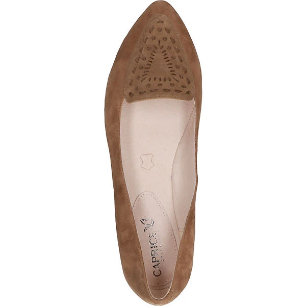 Die modisch aktuellen Ballerinas aus dem Hause CAPRICE ergänzen jeden Look. Der bequeme Blockabsatz bietet einen ansprechenden Auftritt. Das Obermaterial zeichnet sich durch das echte, feine Leder aus. Die Decksohle besteht aus natürlich atmungsaktivem Echtleder, das ein komfortables Trageerlebnis unterstützt. Das Modell kommt ohne jeglichen Verschluss aus, sodass ganz einfach hineingeschlüpft werden kann.