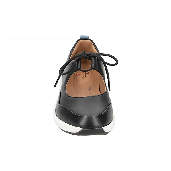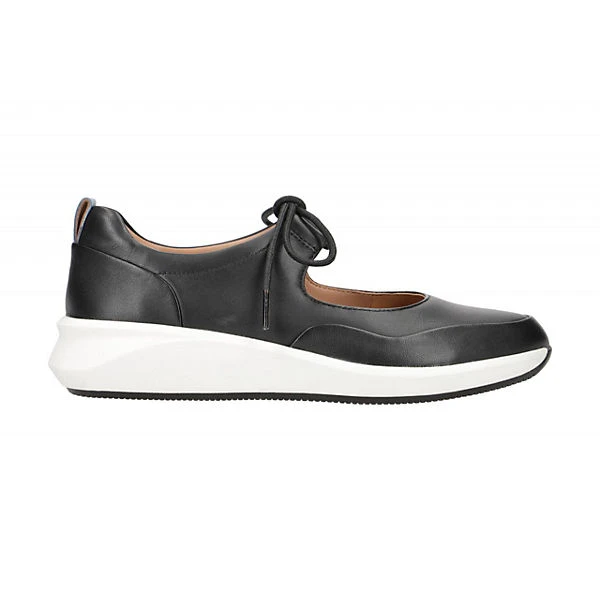 Hersteller: Clarks Hersteller Art-Nr.: 26159933 4 Modellname: UN RIO Skip – Clarks unstructured Machart: Damenschuhe – Ballerina – Mary Jane Farbe: schwarz + blau + weiß (black) Obermaterial: Echtleder – Glattleder (leather) Innenfutter: Echtleder – weich gepolstert Innensohle: Echtleder Komfort Fußbett Wechselfußbett: Ja – herausnehmbare Innensohle Laufsohle: Gummisohle Verschluss: 2fach Schnürung Absatzart: flach – kein Absatz Schuhform: rund Größenhinweis: fällt normal aus Weitenangabe: G – normal Weite
