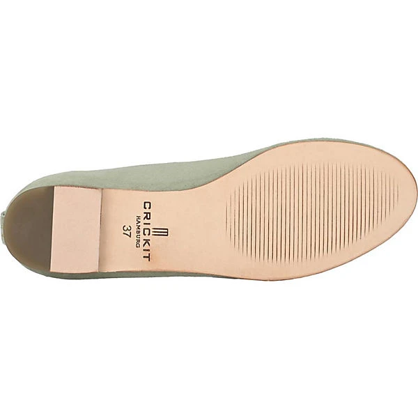 Die Ballerinas aus dem Hause CRICKIT sorgen stets für einen perfekten Style. Das Obermaterial ist aus echtem Ziegenleder. Der bequeme Blockabsatz bietet einen modischen Auftritt. Die Laufsohle aus wasserundurchlässigem Echtleder punktet mit atmungsaktiven Eigenschaften. Dieses Schuhpaar kommt ohne jeglichen Verschluss aus, sodass ganz einfach hineingeschlüpft werden kann. Das Fußbett besteht aus Leder und ist angenehm gepolstert.