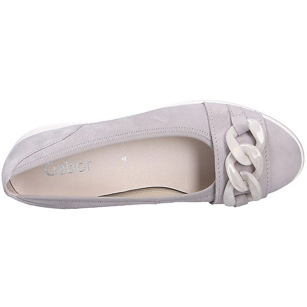 Die Ballerinas aus dem Hause Gabor sorgen stets für einen schicken Look. Die Decksohle besteht aus natürlich atmungsaktivem Leder, das ein komfortables Trageerlebnis unterstützt. Es handelt sich um ein Modell zum einfachen Hineinschlüpfen. Die Schuhe begeistern dank des Obermaterials aus echtem und hochwertigem Leder.