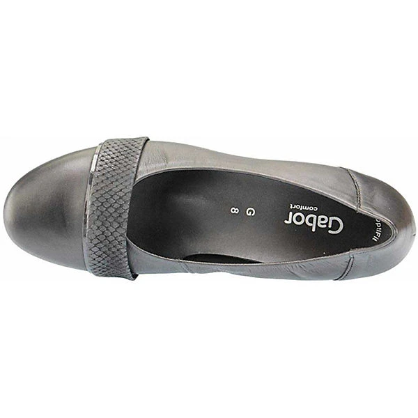 Schöne Ballerinas von Gabor aus einem feinen hochwertigem Glattleder. Innen ist der Schuh mit einem cromfrei gegerbtem Leder ausgestattet. Der Schuh hat eine normale Weite. Der Absatz hat eine Höhe von cirka 1 cm. Die Laufsohle ist aus Krepp. Die Schuhgröße fällt regulär aus.