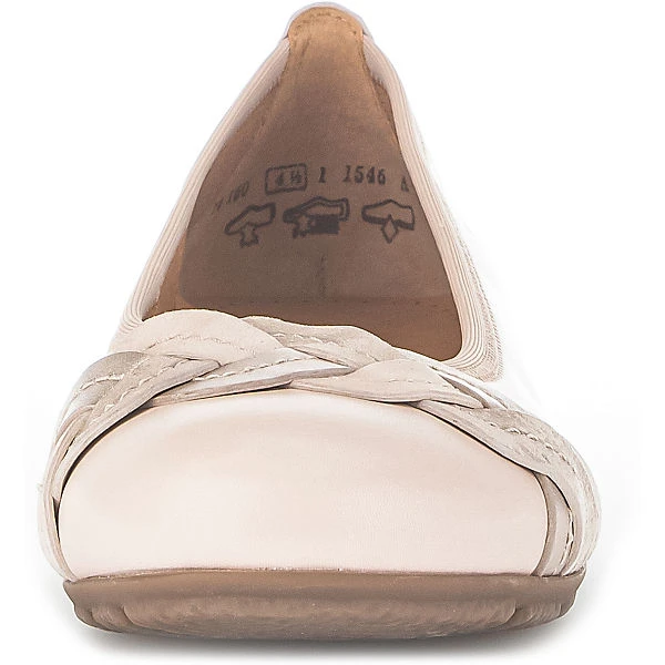 Unterstreichen viele unterschiedliche Outfits: Diese trendigen Ballerinas der Marke Gabor. Das Modell kommt ohne jeglichen Verschluss aus, sodass schnell und einfach hineingeschlüpft werden kann. Das Fußbett besteht aus atmungsaktivem Leder, das ein angenehmes Tragegefühl begünstigt. Die Schuhe begeistern dank des Obermaterials aus hochwertigem Leder.