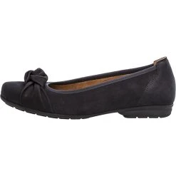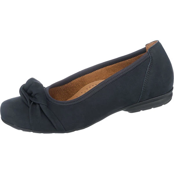 Schöne Ballerinas von Gabor aus einem feinen hochwertigem Glattleder. Innen ist der Schuh mit einem cromfrei gegerbtem Leder ausgestattet. Der Schuh hat eine normale Weite. Der Absatz hat eine Höhe von cirka 1 cm. Die Laufsohle ist aus Gummi. Die Schuhgröße fällt regulär aus.