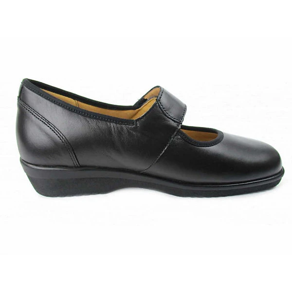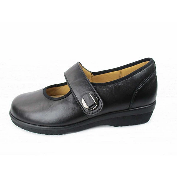 Schöne Ballerinas von Ganter aus einem feinen hochwertigem Glattleder. Innen ist der Schuh mit einem cromfrei gegerbtem Leder ausgestattet. Der Schuh verfügt über eine extra breite Weite. Der Keilabsatz hat eine Höhe von cirka 2 cm. Die Laufsohle ist aus Gummi. Der Klettverschluss zum einfachen und bequemen an- und ausziehen sorgt für einen guten Halt.Ebenfalls ist eine stufenlose Anpassung an den Fuß möglich. Die Schuhgröße fällt regulär aus.