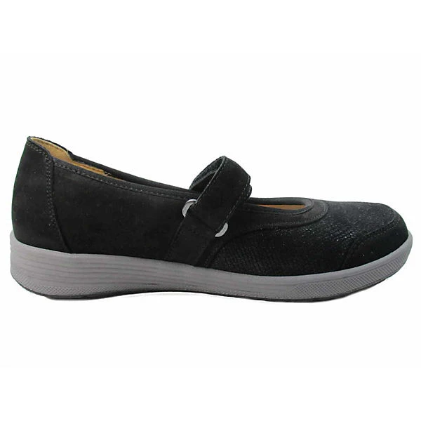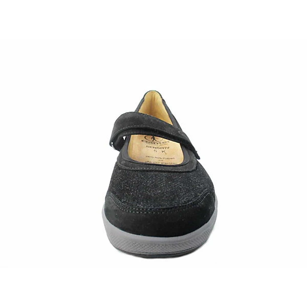 Schöne Ballerinas von Ganter aus einem feinen hochwertigem geprägten Glattleder. Innen ist der Schuh mit einem cromfrei gegerbtem Leder ausgestattet. Der Schuh verfügt über eine etwas breitere Weite. Der Absatz ist durchgehend flach. Die weiche PU-Sohle schont die Gelenke und federt jeden Ihrer Tritte optimal ab. Der Klettverschluss zum einfachen und bequemen an- und ausziehen sorgt für einen guten Halt.Ebenfalls ist eine stufenlose Anpassung an den Fuß möglich. Die Schuhgröße fällt regulär aus.