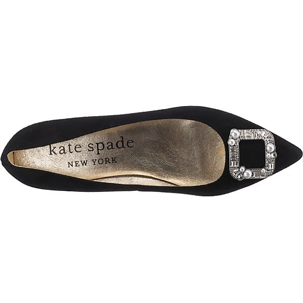 Unterstreichen unterschiedliche Looks: Diese ansprechenden Ballerinas von kate spade. Die Decksohle besteht aus natürlich atmungsaktivem Leder, das ein angenehmes Trageerlebnis begünstigt. Das Obermaterial begeistert durch echtes Wildleder. Das Schuhpaar kommt ohne jeglichen Verschluss aus, sodass im Handumdrehen hineingeschlüpft werden kann. Das wasserabweisende Obermaterial des Modells sorgt für einen hohen Tragekomfort auch bei feuchtem Wetter.