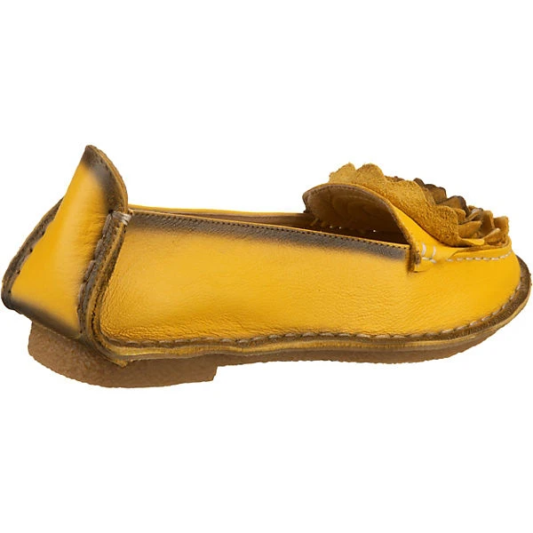Mit einem glatten Echtleder-Obermaterial und einer verspielten Echtleder-Blumen-Applikation auf der Vorderkappe zeigen sich diese klassischen Ballerinas Viviane von Laura Vita. Die flexible Profil-Laufsohle bietet die nötige Trittsicherheit und zeigt sich mit einer originell gestalteten Sohlenkante.