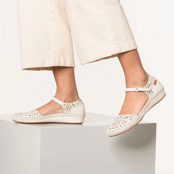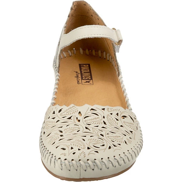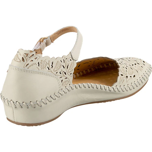 Pikolinos Damen Sandaletten P. Vallerta beige Glattleder Lasercuts Cut Outs Ziernähte Absatz ledern eingefasst synthetische Sohle