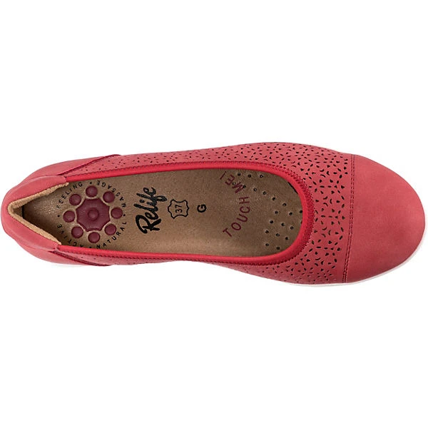 Für ein bequemes Laufgefühl: Die Komfort-Ballerinas der Marke Relife. Die Oberfläche des Paares ist aus Synthetik und sorgt für ein stimmiges Gesamtbild. Das Modell kommt ohne Verschluss aus, sodass im Handumdrehen hineingeschlüpft werden kann. Die Decksohle besteht aus Echtleder und ist komfortabel gepolstert.