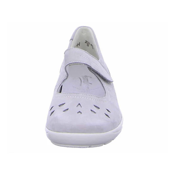 Schöne Ballerinas von Semler aus angenehm weichem und hochertigem Leder. Innen ist der Schuh mit einem cromfrei gegerbtem Leder ausgestattet. Der Schuh verfügt über eine etwas breitere Weite. Der Keilabsatz hat eine Höhe von cirka 2 cm. Die Laufsohle ist aus Gummi. Der Klettverschluss zum einfachen und bequemen an- und ausziehen sorgt für einen guten Halt.Ebenfalls ist eine stufenlose Anpassung an den Fuß möglich. Die Schuhgröße fällt regulär aus.