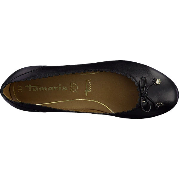 Der Ballerina von Tamaris zeichnet sich durch das anpassungsfähige Leder-Obermaterial aus. Der Blockabsatz mit einer Höhe von 1 cm sorgt für einen sicheren Halt.