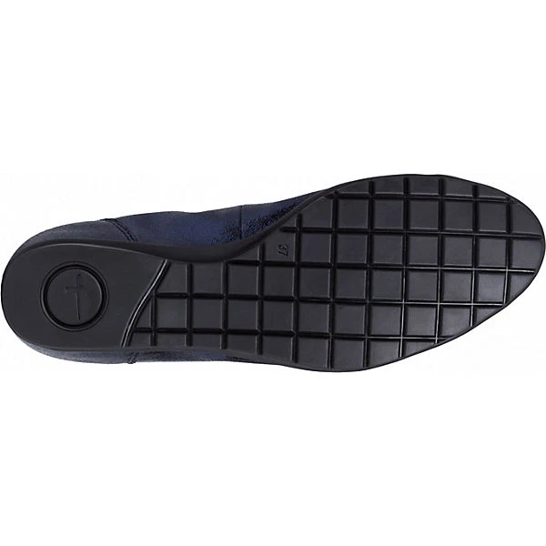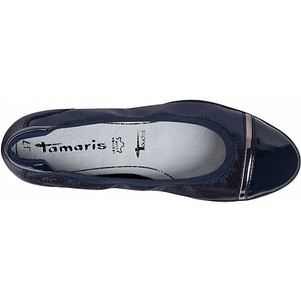 Dieser Ballerina von der Marke Tamaris zeichnet sich durch den flexibelen Materialmix aus Textil und Synthetik aus. Für einen guten Tragekomfort sorgen neben des verstärkten Fersenbereichs auch die gepolsterte Decksohle sowie die rutschhemmende Profillaufsohle aus Synthetik.