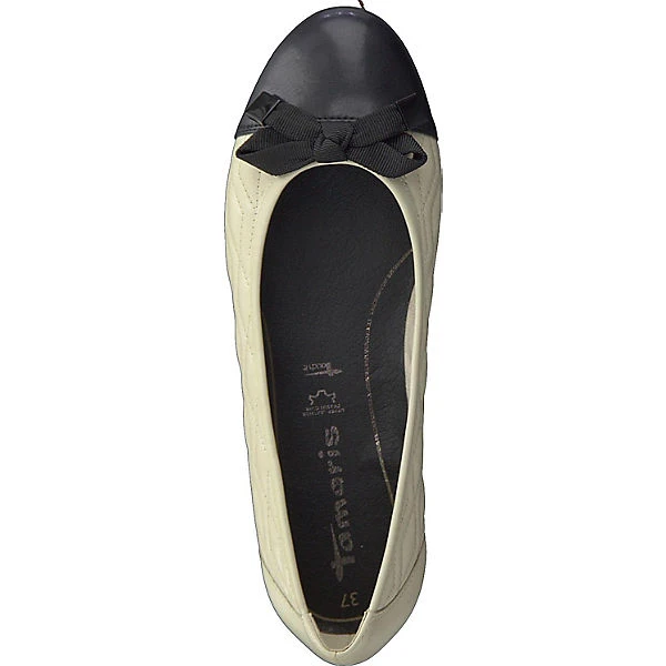 Die stilsicheren Ballerinas der Marke Tamaris ergänzen verschiedene Outfits. Dieses Schuhpaar kommt ohne jeglichen Verschluss aus, sodass im Handumdrehen hineingeschlüpft werden kann.