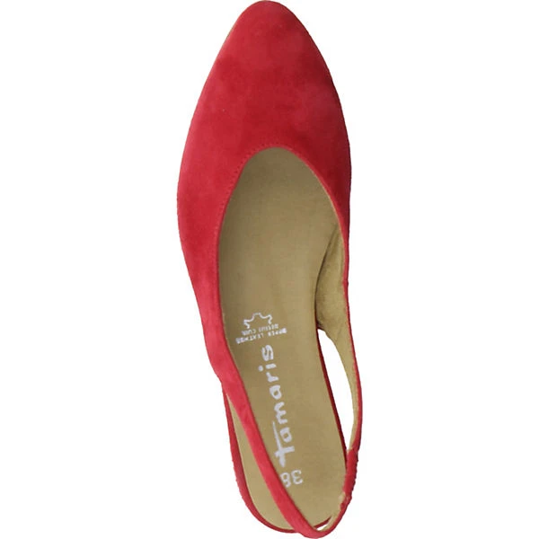 Ein Traum in Rot – die Tamaris Damen Sling-Pumps. Diese sind aus Rauleder gefertigt und zeigen sich mit einem Elastikeinsatz im Riemchen. So sitzen diese optimal am Fuß. Zusätzlich sind die Schuhe mit einer soften Decksohle ausgestattet.