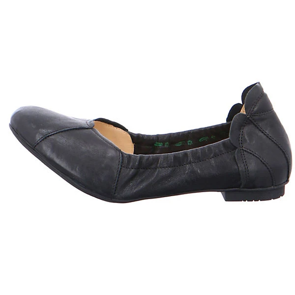 Schöne Ballerinas von Think aus einem feinen hochwertigem Glattleder. Innen ist der Schuh mit einem cromfrei gegerbtem Leder ausgestattet. Der Schuh hat eine normale Weite. Der stabile Blockabsatz hat eine Höhe von cirka 1 cm. Die Laufsohle ist aus Gummi. Die Schuhgröße fällt regulär aus.
