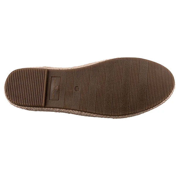 Die Espadrilles von TOM TAILOR sorgen stets für einen trendigen Look. Das textile Futter bestehend aus Baumwolle passt sich hervorragend an die Füße an und ist zugleich äußerst anschmiegsam. Die Baumwoll-Oberfläche ist besonders robust und anschmiegsam.
