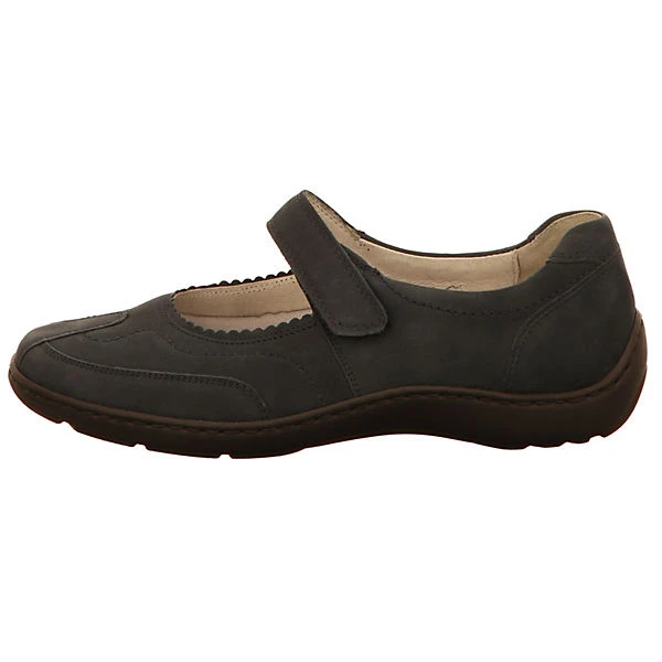 Schöne Ballerinas von Waldläufer aus einem feinen hochwertigem Nubukleder. Innen ist der Schuh mit einem cromfrei gegerbtem Leder ausgestattet. Der Schuh verfügt über eine etwas breitere Weite. Der Keilabsatz hat eine Höhe von cirka 2 cm. Die Laufsohle ist aus Gummi. Die Schuhgröße fällt regulär aus.