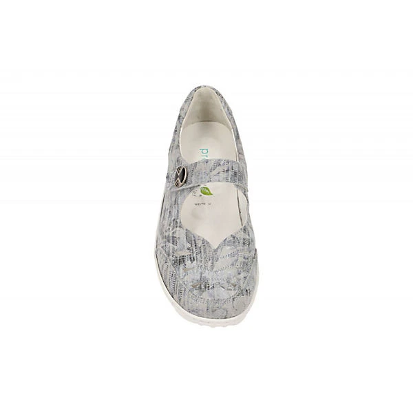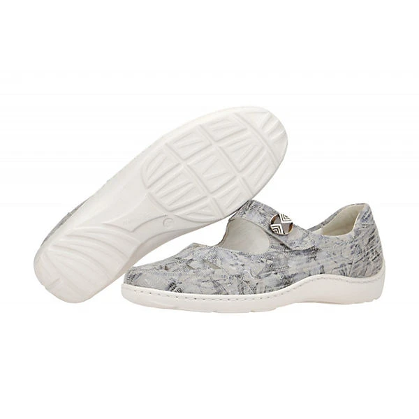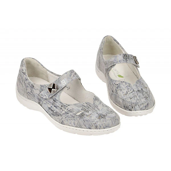 Hersteller: Waldläufer Hersteller Art-Nr.: 496309 144 267 Modellname: HENNI Machart: Damenschuhe – Ballerina – Mary Jane, Mary-Jane Farbe: grau + Blumenprint blau grau + Glanz-Effekt (sky) Obermaterial: Echtleder – Nubuck (Meadow) Innenfutter: Echtleder und Textil Innensohle: Echtleder Komfort Fußbett, proaktiv Massage-Fußbett Wechselfußbett: Ja – herausnehmbare Innensohle Laufsohle: Polyurethan (PU) – extra leicht und flexibel Verschluss: Klettverschluss Absatzart: flach – kein Absatz Schuhform: rund Größenhinweis: fällt normal aus Weitenangabe: H – Extra Weit